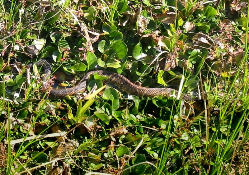 This next image I shot after my harvesting. This is one of the variety of critters I have the pleasure of encountering while I trudge my way through swampy areas. A very good sized Water Moccasin, I estimate her length around 3.5 feet. Beautiful snake!