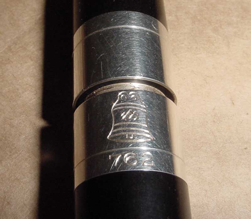 The whistle has a neat Bell stamped into the slide, along with the # of manufacture. This whistle is 762. Chris tells me that he’s in the 1200’s now. This is about where the tuning slide should be for the whistle to be in tune with a=440.