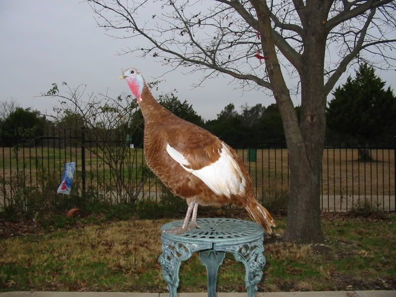 Violet is our pet guard turkey. When I play my whistles on the back porch, Violet comes a runnin’! And then she struts around and does the Turkey Trot until I stop. (true!) It’s funny, I don’t care what anybody says.