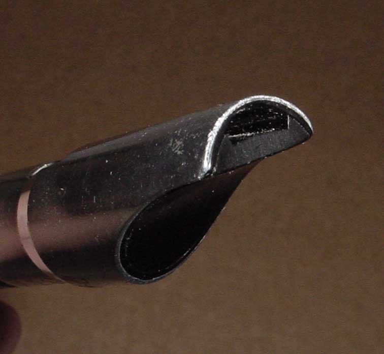 Here’s a closeup of the mouthpiece. The Burke Mouthpiece is also fairly distinctinve, and I can’t think of another whistle that looks much like it. Once you’ve seen a Burke, they really can’t be confused with anything else.
