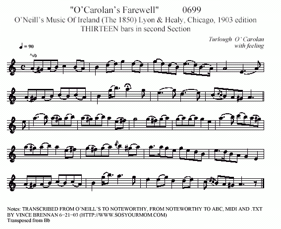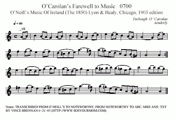 Part of the sting can be taken out of the tune if you play it on a lower whistle–Jerry O’Sullivan’s version on Volume I of the 2-CD Narada O’Carolan compilation (Celtic Treasure is the name of the compilation) is a particularly tractable version to have as a frame of reference. You are ‘out there’ on this tune with some considerable sustained high notes, regardless of how deep the whistle you use. I sort of hold off working on this one until my wife is out of the house.