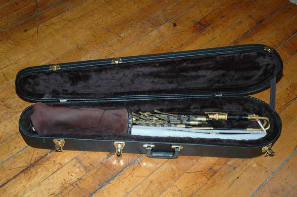 I’m using a violin case but you have to break-down the set for travel. Removing the bass drone extension and the bass regulator (with reed) extension.