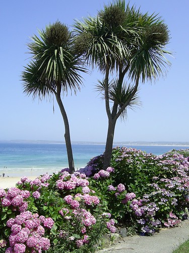 I’m not sure who coined the term “Cornish Riviera,” but it refers to the southern coast of Cornwall which is slightly milder and softer in aspect than the sterner, rockier and (in my view) more magnificent north Cornwall coast (But I would say that I suppose). “English Riviera” has long been used to characterise the area of south Devon around Torbay, Paignton and Brixham. I imagine the term was used, in hope, more to make people think the climate was Mediterranean-like, rather than in an attempt to evoke images of the pseudo-sophisticated, occasionally trashy resorts of the continental “rivieras.” The palm trees helped, and the cabbage palm is often known as the Torbay Palm because of the plethora of them planted there. Unfortunately for Torbay, it’s been discovered that this particular plant is hardy in most of the UK, contrary to what old gardening books would have us believe. I’ve seen a good few thriving even in the draughtier areas of northern England.