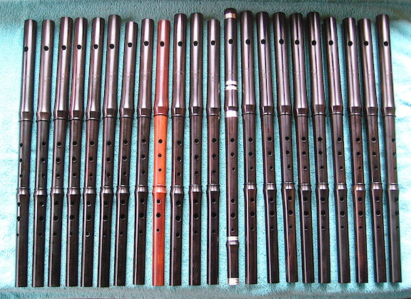 A few new items from my workshop. The Irish Flute Combo starts with one of my basic D flutes with Rings and Slides (in this instance, one of my small handed versions), with extra joints that converts it into a flute in C, Eb or E. Thus these keys can be easily played: C/F, D/G, Eb/Ab and E/A. I will be adding this combo package to my website this week.