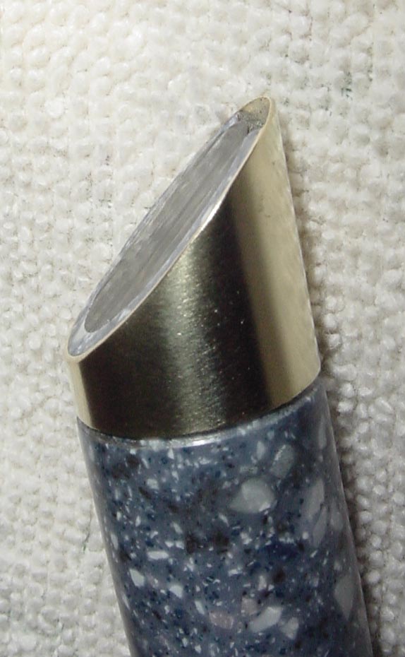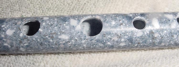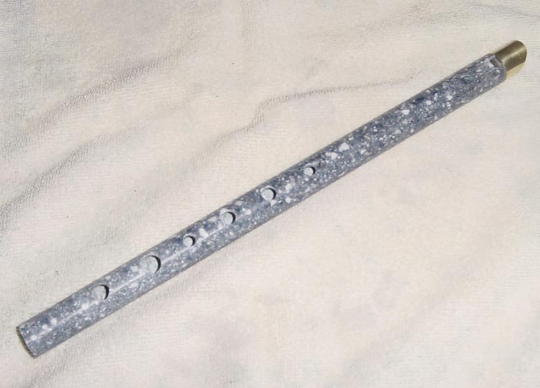 These are made of DuPont Corian, the same stuff that countertops are made of. Corian comes in a variety of shades, and I currently have this blue, a black color, and a couple of sandstone-like colors which I’ll be posting to my website in the next couple of days. I’ll be getting a green malachite-like color soon, too.