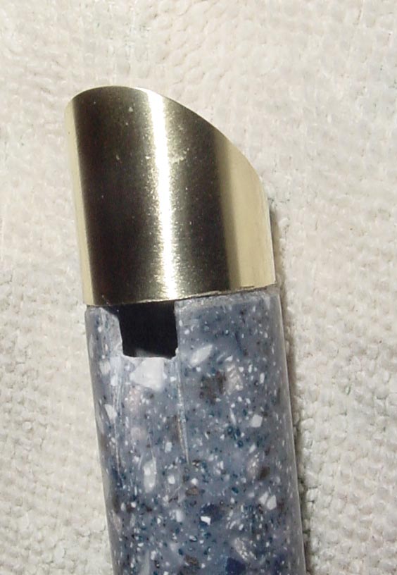 My biggest concern was getting an invisible seam. Corian doesn’t come in 1" thicknesses, or if it does, it’s nearly impossible to find. So, I have to marry two pieces, and make the seam invisible, and make the bond strong enough to hold up to the rigors of turning it into a whistle. The recommended “welding” glue DuPont offers is very strong, but not invisible by any stretch.
