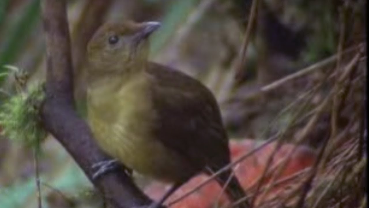 David Attenborough watching a Bowerbird improving its bower