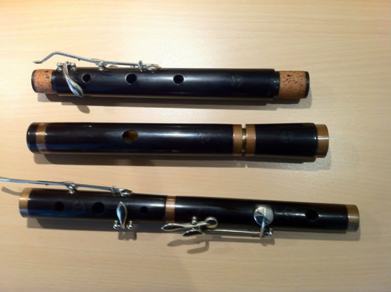 Both flutes with 7 keys. Why 7, not 8? Because 7 is the most you can have on a Lehart flute! Regular 6 keys as normal with semitone below (C sharp on D flute). So B on the C flute, and Eb on the E flute.