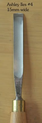 The #4 is quite narrow for a normal gouge and would mostly suit working narrower slips for flat pitch chanters. It has been specially set by Cillian O’Briain to allow more directional control (Wha?) Very sharp.