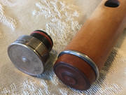 It comes in a plastic pistol case. Not elegant but very protective. For elegance, it also comes with two end caps — the original boxwood one and a sterling silver version for those After Six gigs. I’m told by a previous owner (the cap came from a different flute) that the cap was made by Chris Abell, but I can’t verify that. In any case, it would add a touch of class to your session or performance.