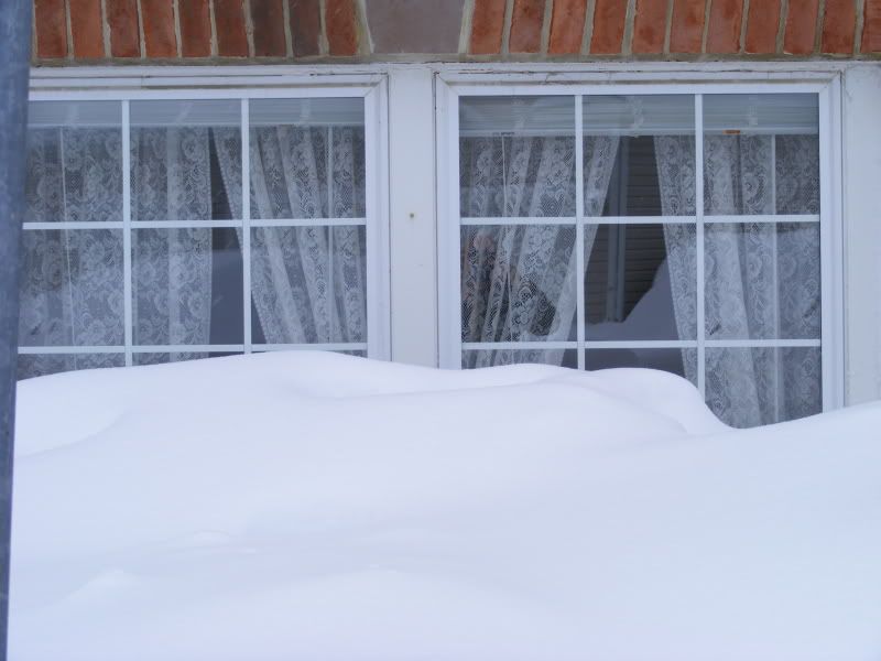 I braved the roads and local drivers yesterday to get gasoline for the generator (we’re expecting 10-15" today with strong winds, power outage likely). It had stopped snowing 60 hours earlier. The roads are a mess. I was able to get around by taking back roads almost exclusively, but the main roads look as though they haven’t been touched since the snow ended. The four-lane road I live on only has one lane cleared in each direction. Turn lanes haven’t been touched. I can’t begin to imagine what it’s going to be like when people go back to work. My road was backed up over two miles from 7 till 3 yesterday. We haven’t gotten mail since last Friday.