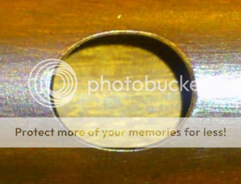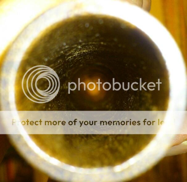 Body bore from head end (flash causes reflections in the pitting and grain striations in the bore which look like protrusions, but they’re not…)