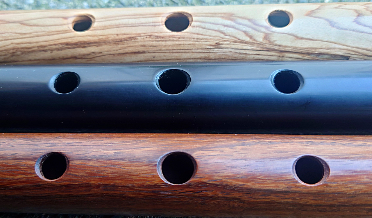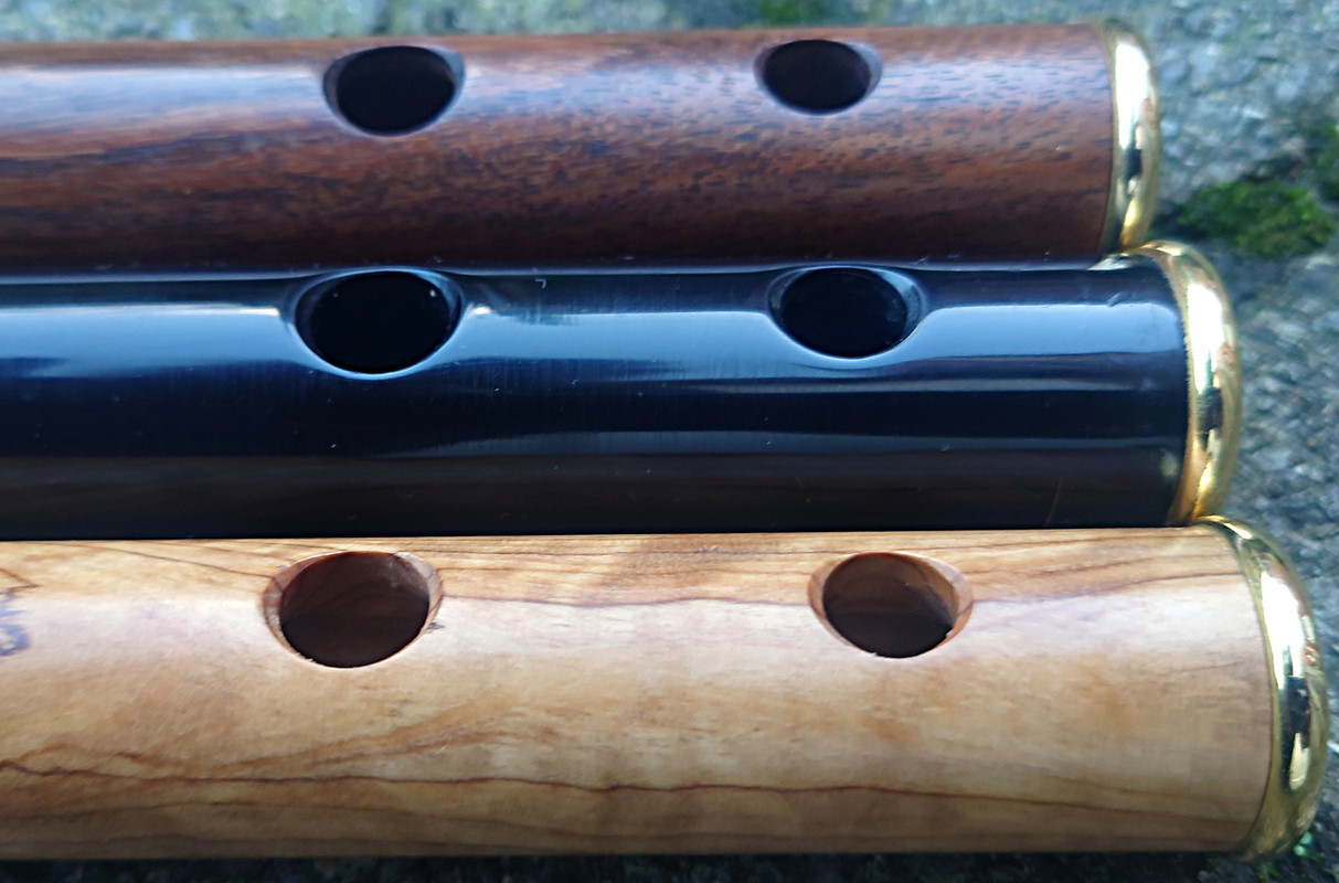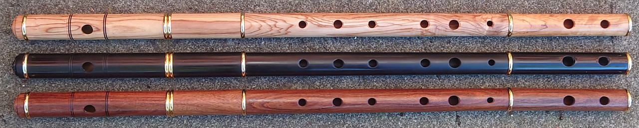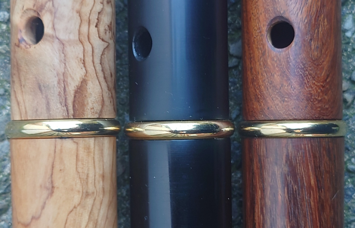In early August 2024 I had some interactions on Facebook with one Gulraiz Deura, a supplier of “Irish” flutes from Sialkot, Pakistan. The upshot was that I challenged him to send me some samples of his output for review. I suggested a sample of 6 and specified that they should be standard production items from stock, not ones given special attention for the intended extra scrutiny. He offered just one, but I responded that that would hardly be a representative sample. We compromised on three, which I think was reasonable given the costs of international carriage involved. I had my choice of materials from his available range. The deal was that I would assess and review them, give him feedback and publish my review in relevant places online and then either buy some or all of the sample flutes or return them to him at my own expense. I chose to receive flutes in “rosewood”, olive wood and polymer (Delrin or equivalent) and eschewed the offer of one in African Blackwood.