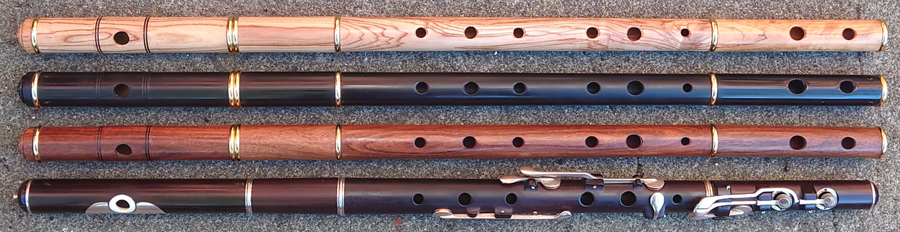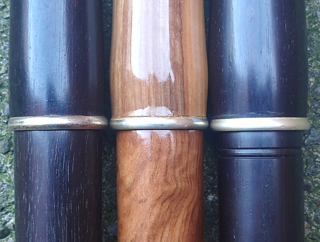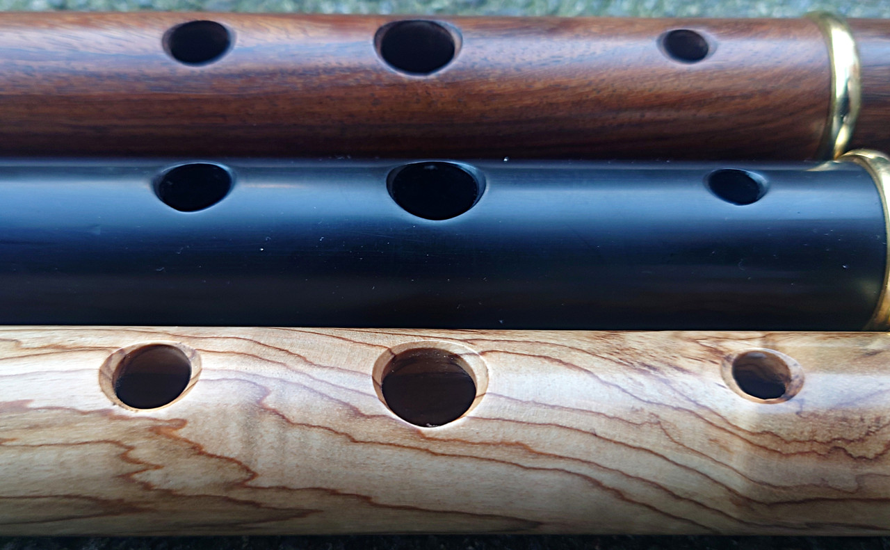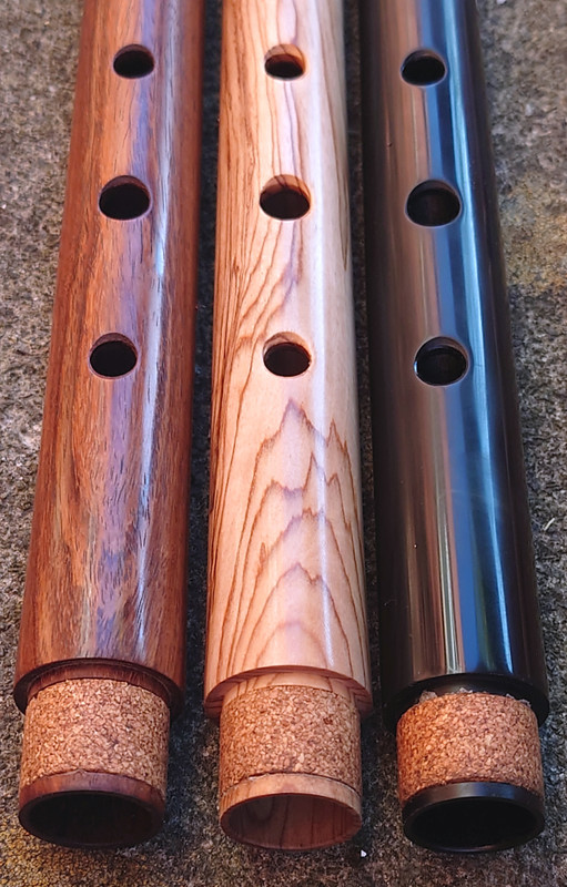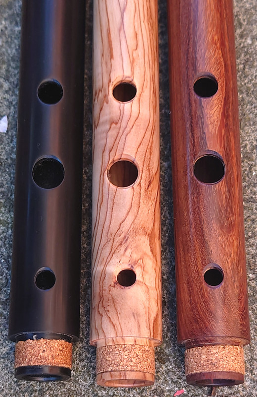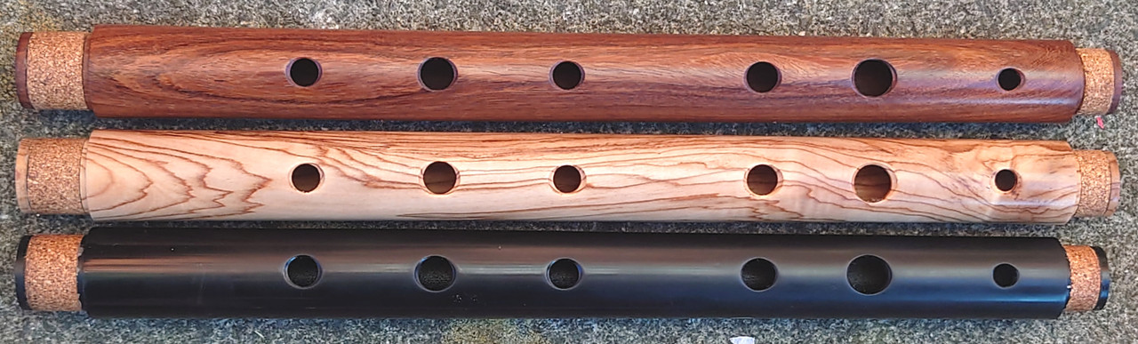 In early August 2024 I had some interactions on Facebook with one Gulraiz Deura, a supplier of “Irish” flutes from Sialkot, Pakistan. The upshot was that I challenged him to send me some samples of his output for review. I suggested a sample of 6 and specified that they should be standard production items from stock, not ones given special attention for the intended extra scrutiny. He offered just one, but I responded that that would hardly be a representative sample. We compromised on three, which I think was reasonable given the costs of international carriage involved. I had my choice of materials from his available range. The deal was that I would assess and review them, give him feedback and publish my review in relevant places online and then either buy some or all of the sample flutes or return them to him at my own expense. I chose to receive flutes in “rosewood”, olive wood and polymer (Delrin or equivalent) and eschewed the offer of one in African Blackwood.