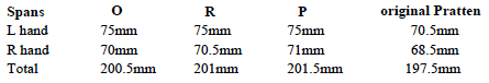 The tone-holes are fairly consistently placed longitudinally despite the slight discrepancies in joint lengths between the 3 examples. The spans, overall and for each hand, are somewhat longer than those of my original Boosey Pratten (Images 2 & 35 above), which may be an issue for some potential customers. In particular the distance between holes 5 & 6 at around 40mm might be challenging for some. There are some slight inconsistencies, too, as shown in the following table, and other discrepancies for individual holes are apparent (Images 1,2,6 above), but I haven’t measured them exhaustively.
