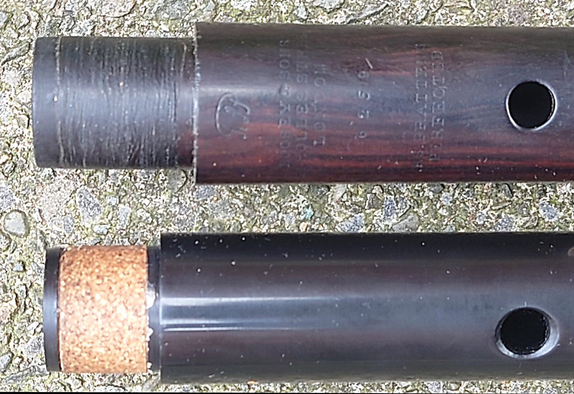 - Upper tenons of original Boosey Pratten #6259 and P compared