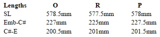 Perfect consistency on this aspect should be a quite easily attainable production goal! I haven’t taken and compiled measurements of the actual sections, but I have recorded some significant details in the table below. The discrepancies are not huge and any slight intonation issues caused could easily be adjusted for in other ways, but again, these dimensions really ought to be identical. With the tuning slides closed up, I measured the sounding length (SL = embouchure centre to foot end), the distance from the embouchure centre to the centre of hole 1 (Emb-C#) and the distance between the centre of holes 1 and 6 (C#-E).