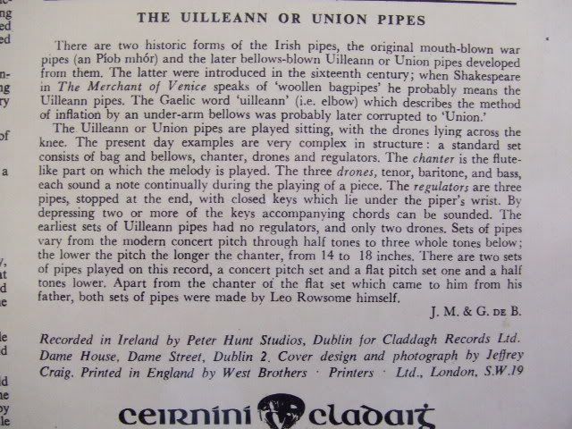 Here’s what it says on the sleeve notes of “The king of the pipers” LP.