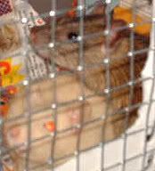 Then I took Mr. Mouseinthewall out of his cage and put him in the Sterilite cage. He showed no inclination to bite, ran up my arm, not frantic, and sat on my shoulder. Then I nudged him down my arm and into the Steralite bin.