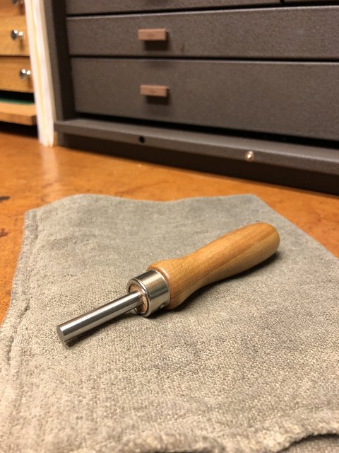 At 63 I suffer with increasing discomfort in my grip due to osteoarthritis. It doesn’t matter if I slowly spin the reamer in the lathe while holding the flute blank in my hands or turn the flute blank by hand over a reamer held in a vise. Either way, even when the reamer is cutting well, my thumb and a couple of fingers really don’t like it by the time the reamer is all the way through.