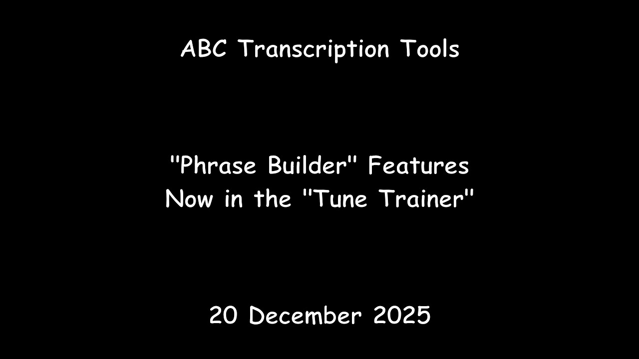 I’ve added my Phrase Builder features into the Tune Trainer to make it even easier to practice tunes phrase-by-phrase without having to make any changes to the tune ABC itself.
