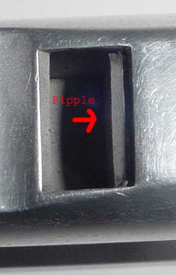 Here’s another angle on the mouthpiece. The part that goes in your mouth is a little thicker than a cheapie plastic whistle (such as a Generation), and ultimately reminds me of a Susato. In fact, you can see the striking similarities if you look at my review of the Susato low F.