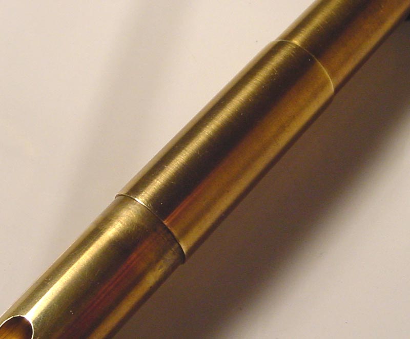 Since the tubing in the head makes up part of the labium ramp, you really couldn’t tune this whistle by moving the head up and down the body like on most plastic or acetal-headed whistles. So, this one has a bona-fide tuning slide. Some whistles have really loose-fitting tuning slide, and others it’s good and tight. Reyburn whistles have a nice tight tuning slide; not too hard to move, but it certainly isn’t going to move on it’s own. I can’t push this slide closed at all when I’m playing the whistle, and I tried. No worries here about your tuning changing in the middle of a tune because you happened to get a little too excited and pushed the whistle a little closed.