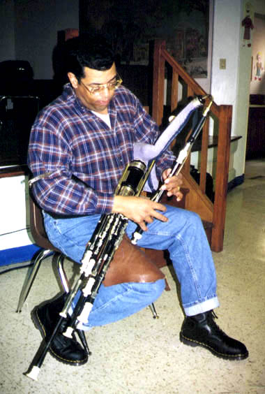 My first set was an experiment by Mark Hillmann, the best could not get it reeded and playing sufficiently. I was fortunate enough to get ahold of a D. Williams chanter and a Bill Thomas drone (he’s suppose to be making a set of T,B,&Bs reg. with the taylor style reed cap) at this point, was I able to start to learn the ins and outs of the instrument. …”