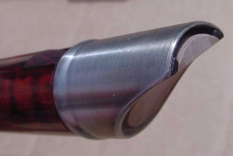 A shot at the end of the whistle, showing the ferrule at the base, as well as the last two holes. The holes on this whistle are smooth, round, and well-centered. Again, everything is amazingly precise. This whistle may cost a little more than some, but you definitely get your money’s worth in attention to detail!