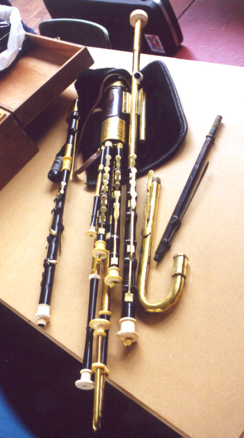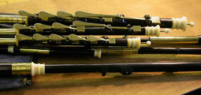 This is Coyne. Note the two decorative rings in the endcaps instead of three, and that the end of the caps are rounded - the shape of the caps are reflected in the drone endmounts, also - the narrower regulator keys, forged in their own distinctive shape; and the lack of a ferrule on the small regulators at the stock end, a simple ivory mounting being used, instead of Egan’s mount - ferrule - mount. Also that the gap at the end of the small reg is much smaller than with Egan, who perhaps lengthened the bore here for tuning reasons.