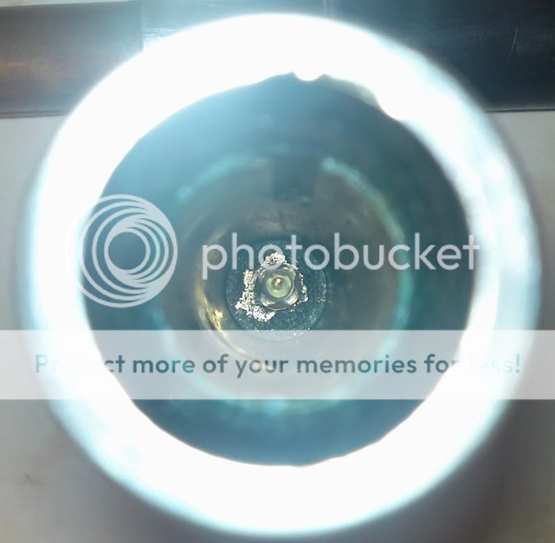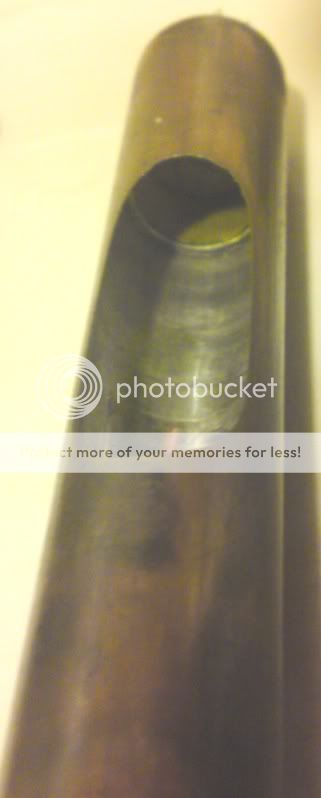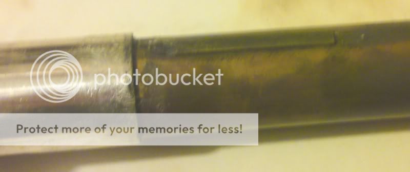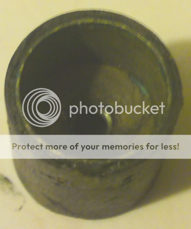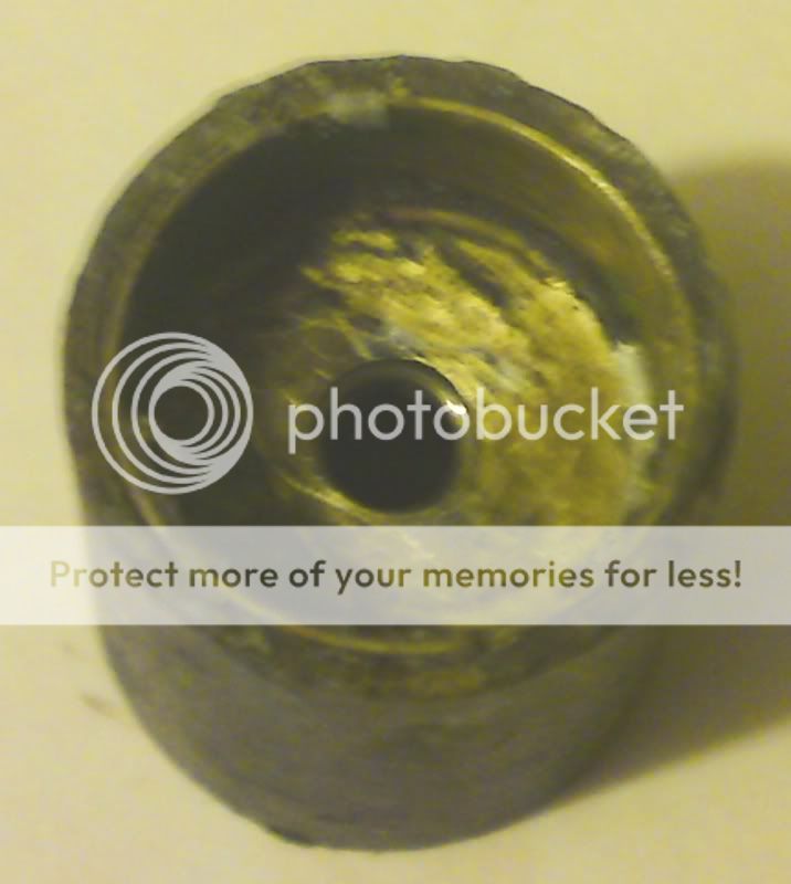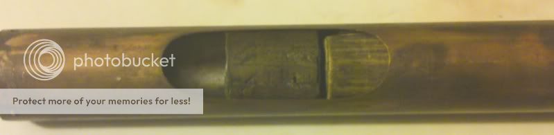 The stopper/traveller, “short” side (the central bulkhead with the threaded hole through it for the spindle is not placed centrally within the length of the tube, more about a 1/3-2/3 split).