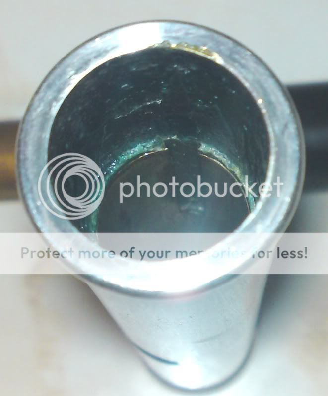 View into the head (outer tube and sleeve before reinserting inner tube) showing the screw spindle at the top