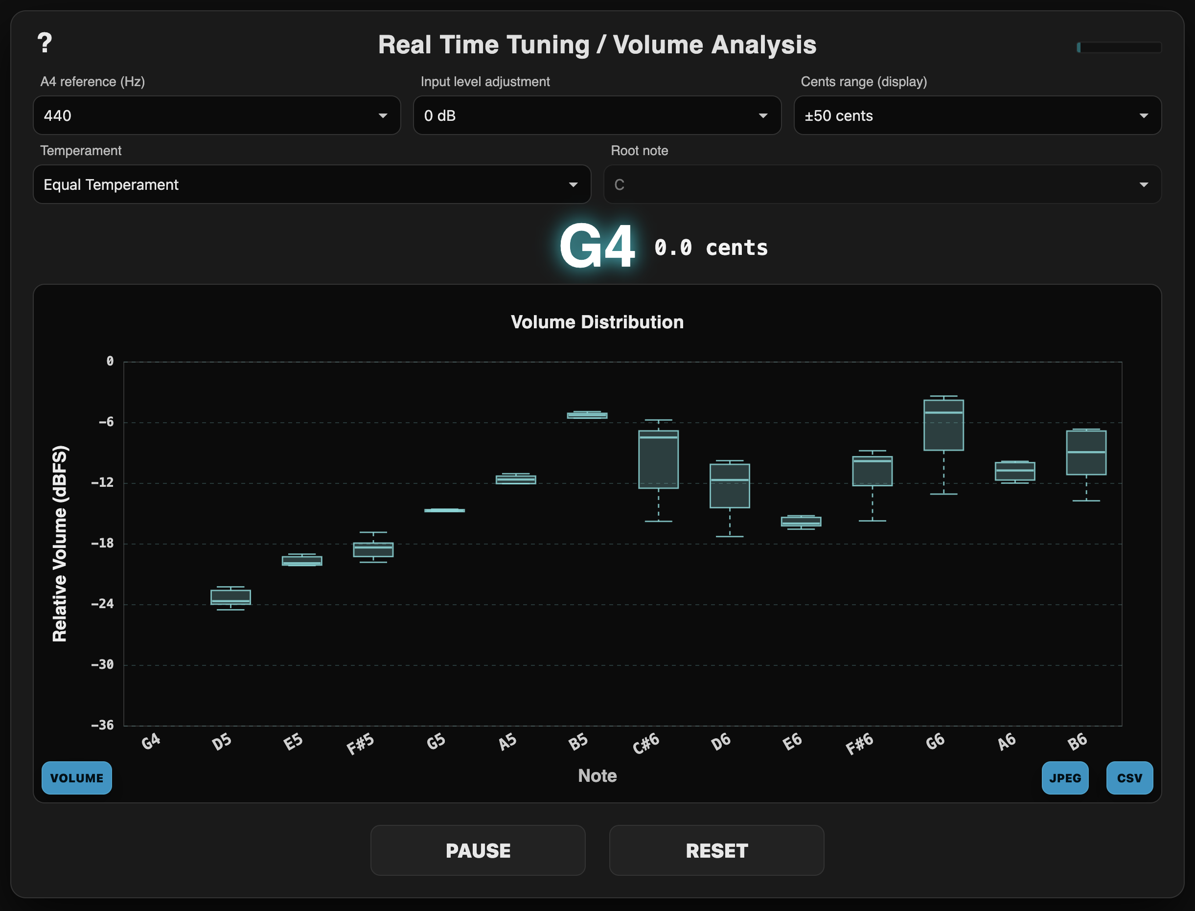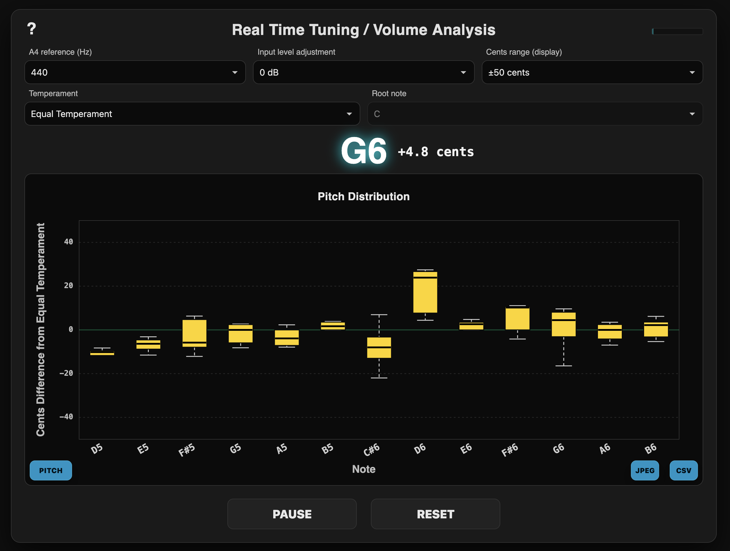 Specifically for Terry McGee, Iāve added a new Real Time Tuning and Volume Analysis (RTTVA) tool (independent of the RTTA tool) that provides both pitch and volume graphs:
