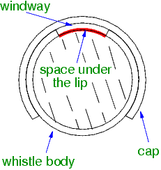 The issue illustrated by Tunborough is well worth looking into but personally I don’t think you have to go the point of making flat surfaces for the windway floor. Of course it’s fine if that’s what you like to do for your design. Lots of geometries will work. The piece of wisdom is certainly that you have to direct the wind sheet to the blade to split the airstream. And there are several ways to do that. The GG whistle design is the simplest way to make things work - everything concentric. Bear with me here for an explanation regarding what Tunborough brings up.