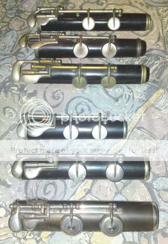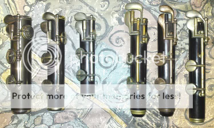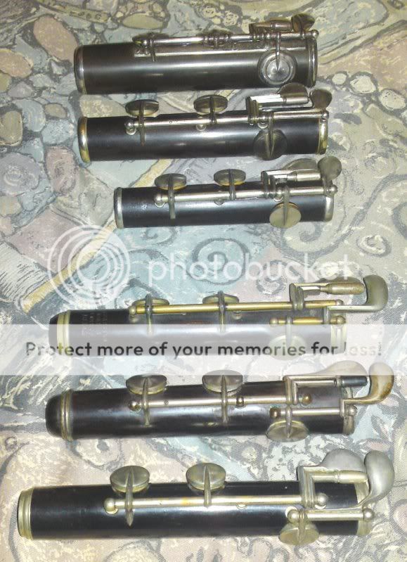 We’re wandering all over the shop theme-wise in this thread, but hey, it’s a good 'un, I reckon. I checked out what I have around, and actually the RC&Co ones are a bit different from the Hawkes ones I have to hand (lousy memory, apparently!), though I suspect the Hawkes ones are earlier than the Rudalls and that later examples might be more similar. OK, so here are some rod-axle mechanism foot joints, all off conoid flutes save one, all flutes playable at A=440 except the diapason normal Couesnon.